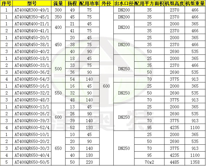 例如:400QR450-20其中400表示適用井徑不小于400毫米。(如果用在高溫?zé)崴貎?nèi),外徑可以不考慮)。 Q表示潛水的(漢語(yǔ)拼音的打頭字母); R表示熱水(漢語(yǔ)拼音的打頭字母); 450表示流量是450m3/h ; 40表示揚(yáng)程是40米; /2表示2級(jí)葉輪串聯(lián)。