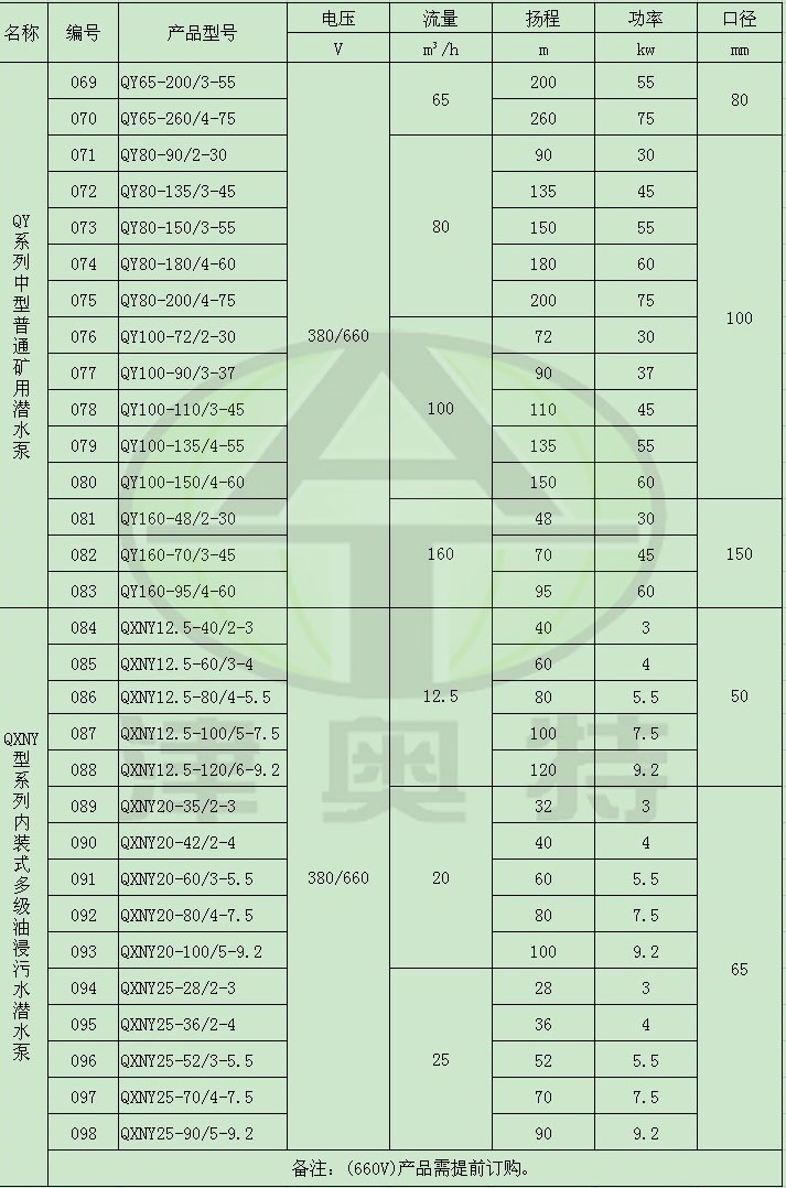 污水泵 >> QY中型普通礦用潛水泵,QXNY系列多級油浸式污水潛水泵 >> QY普通礦用耐腐蝕潛水泵,QXNY內(nèi)裝多級油浸式污水潛水泵