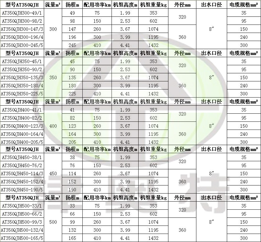 技術參數(shù): 機組最大外徑見參數(shù)表,出水口徑200mm(8")。固定螺栓數(shù)量為:12條,型號為16×60(8.8級),螺栓中心距離256mm.為方便用戶安裝使用,出廠時特意配備與機組出水口一致的配對法蘭一片(外徑282mm內(nèi)徑220mm厚度20mm)由用戶自己現(xiàn)場焊接接泵短管。 允許介質(zhì)范圍 1:各種海水,堿性腐蝕的水,無雜質(zhì)清水,冷凍水/冷卻水,雨水,煤礦、鐵礦、金屬礦等地下涌水,引用水,礦泉水等。 2:允許工作水溫范圍+5至+25℃ 3:固體雜質(zhì)含量(質(zhì)量比)不大于0.01% 4:PH值(酸堿度)7.9-8.6 5: 6: 7: 機組必須完全侵沒水中工作。