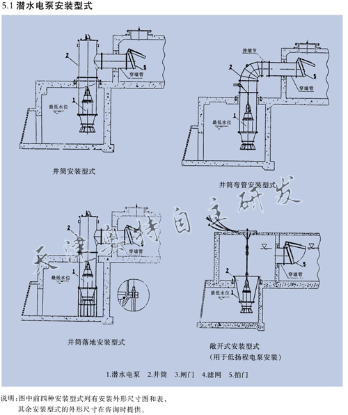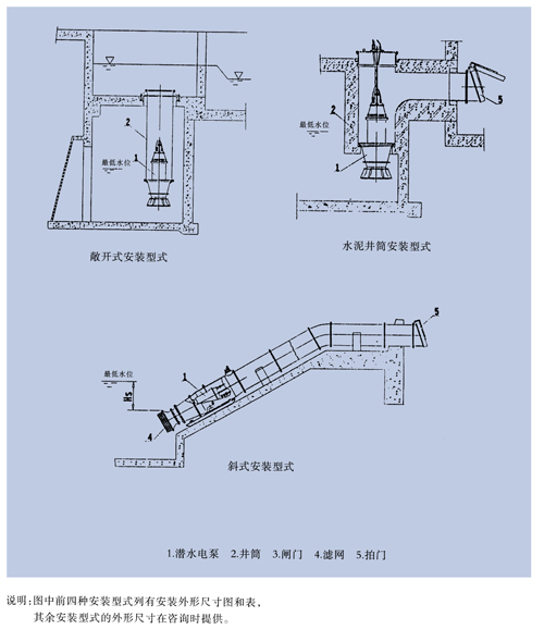 3. 安裝方式:彎管懸吊、井筒懸吊、混凝土研制井筒式。